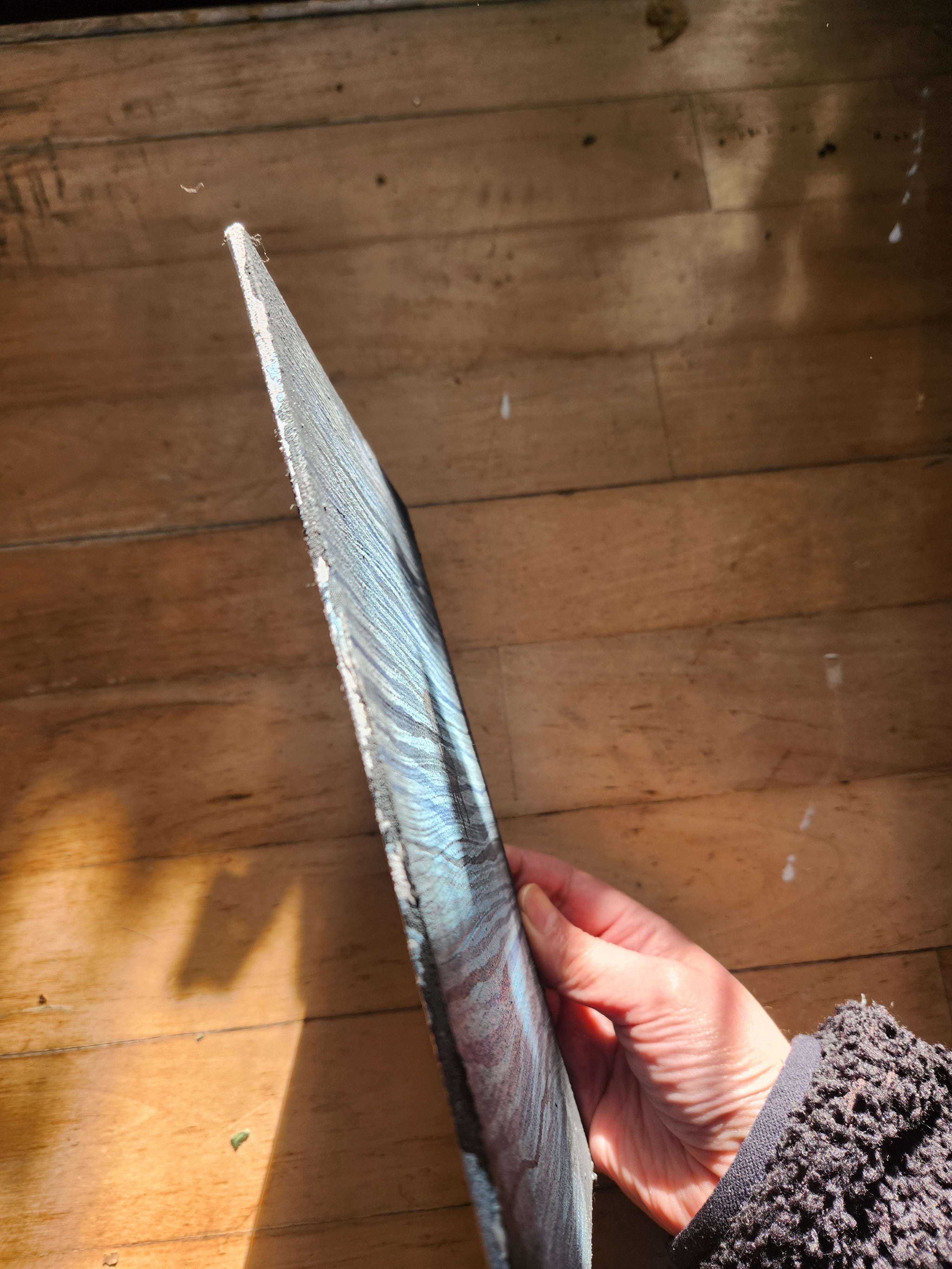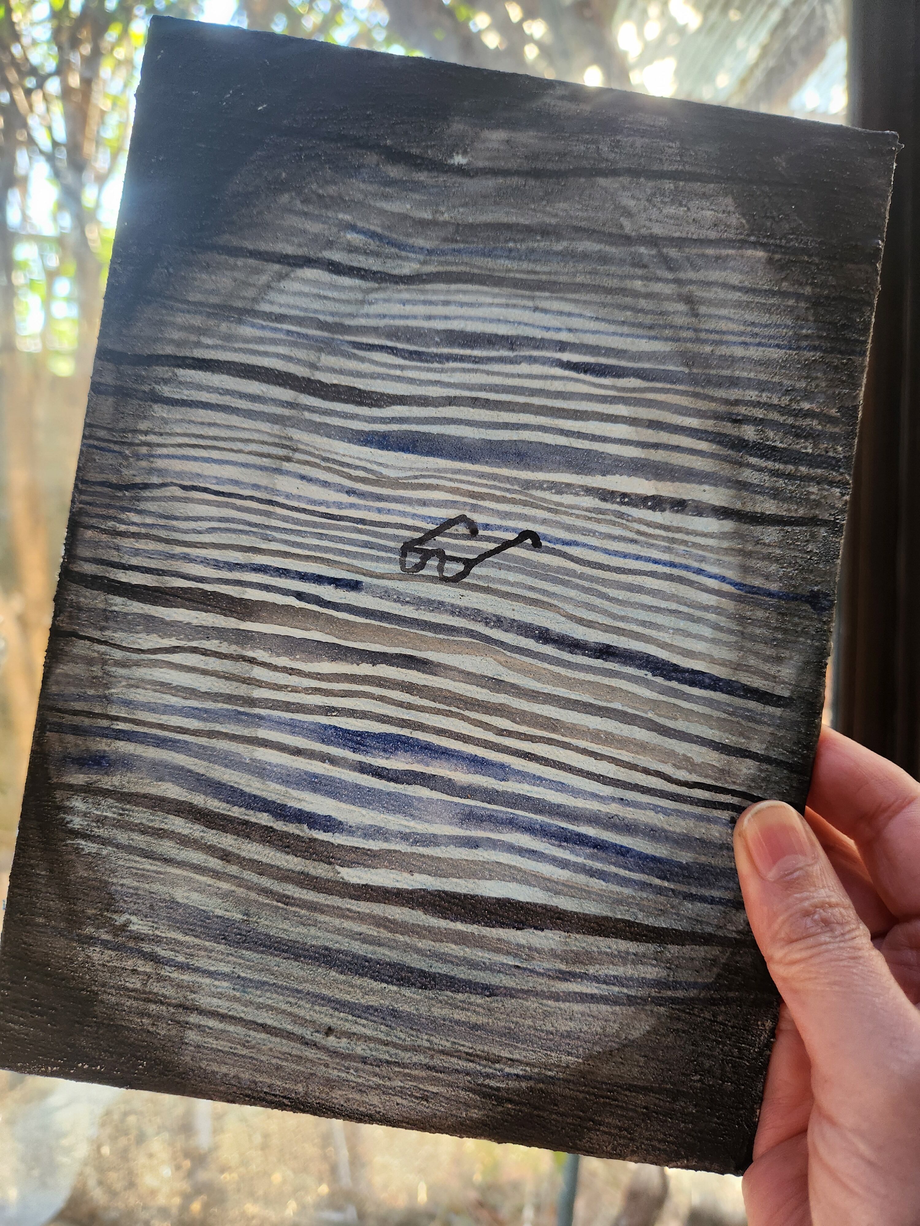 キャンバス地を張った厚紙にアクリル絵の具で描きました。ざらりとした質感が特徴です。小さい作品ですので、一品でもシリーズでも、スペースをとらず飾っていただけると思います。